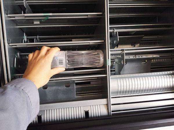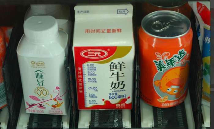 這類售貨機相較于彈簧螺旋售貨機不易卡貨,適合售賣矮罐飲料和矮盒裝的商品(比如盒飯、桶裝泡面、奶茶),它對商品的要求是要“站得穩、站的牢”,否則其中一件商品傾倒,同貨道的商品將全部倒下(可聯想多米諾骨牌效應)。