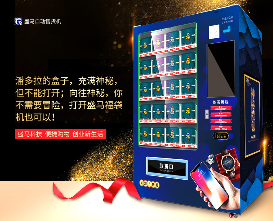 福袋機以無人販賣機技術為支撐,通過掃碼支付,福袋機柜按照消費者在屏幕上點擊選擇的福袋號碼推出一個神秘福袋,打開福袋,就有“神秘禮物”呈現,可以直接取走。機器內分別是30元-3000元價值不等的福袋,商品種類繁多,其中不定時會在福袋內出現不同的高價值產品,福袋采用統一大小的精美禮品盒。