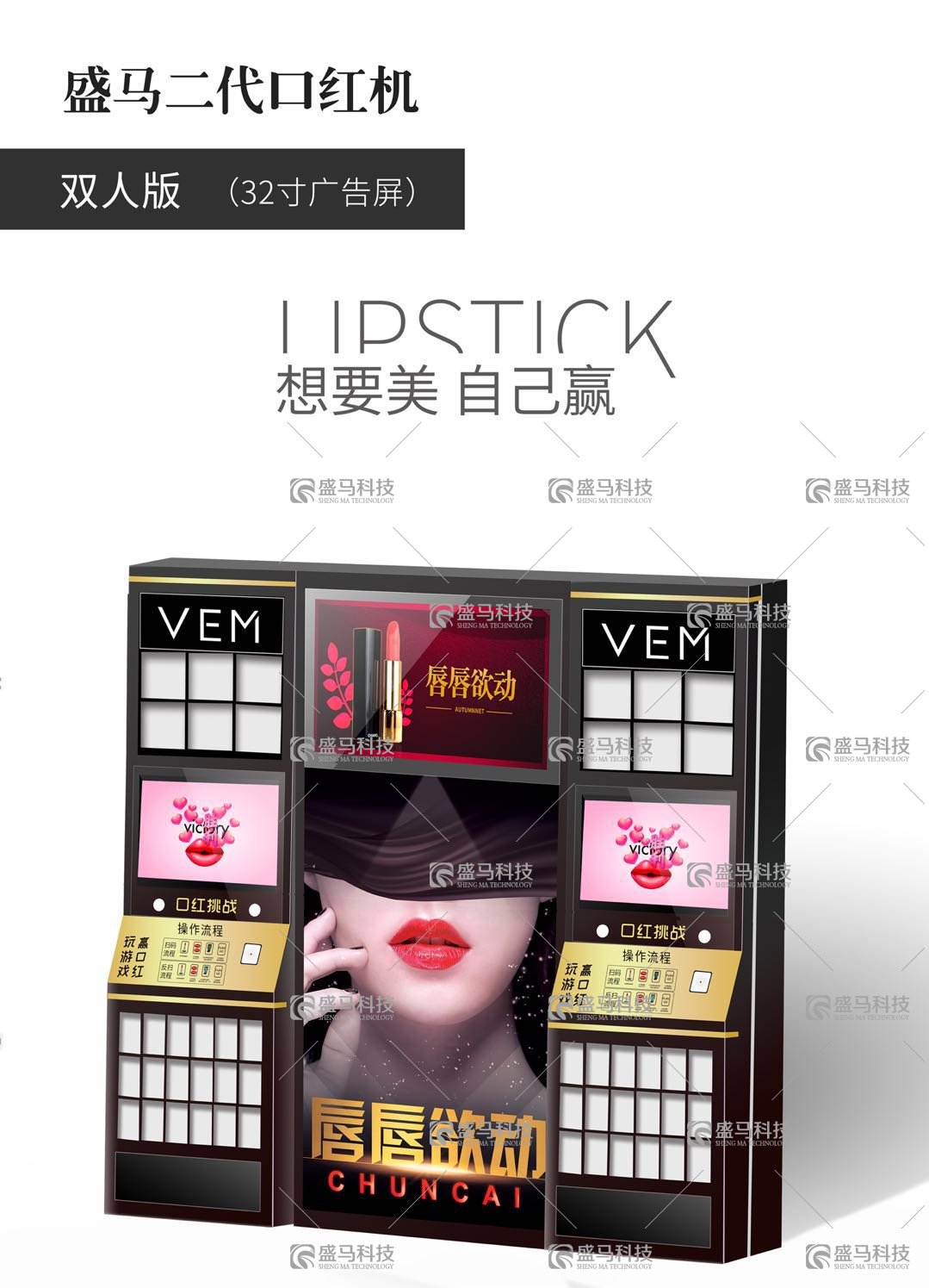 口紅機是無人自動售貨機格子機的一種,無人自動售貨機常見的有彈簧式的,履帶式的,還有就是格子機。但是它和普通的格子機又不一樣。因為它帶有游戲系統軟件,更具有娛樂性質,是自動售貨機與游藝產業結合的產品。那這種游戲是什么游戲呢?市面上大部分口紅機上的游戲是見縫插針(游戲類別之后應該會慢慢增加)。就是說客人可以在直接購買的同時還可以通過花10塊錢左右去玩游戲去獲得價值500左右的口紅或者其他禮品。